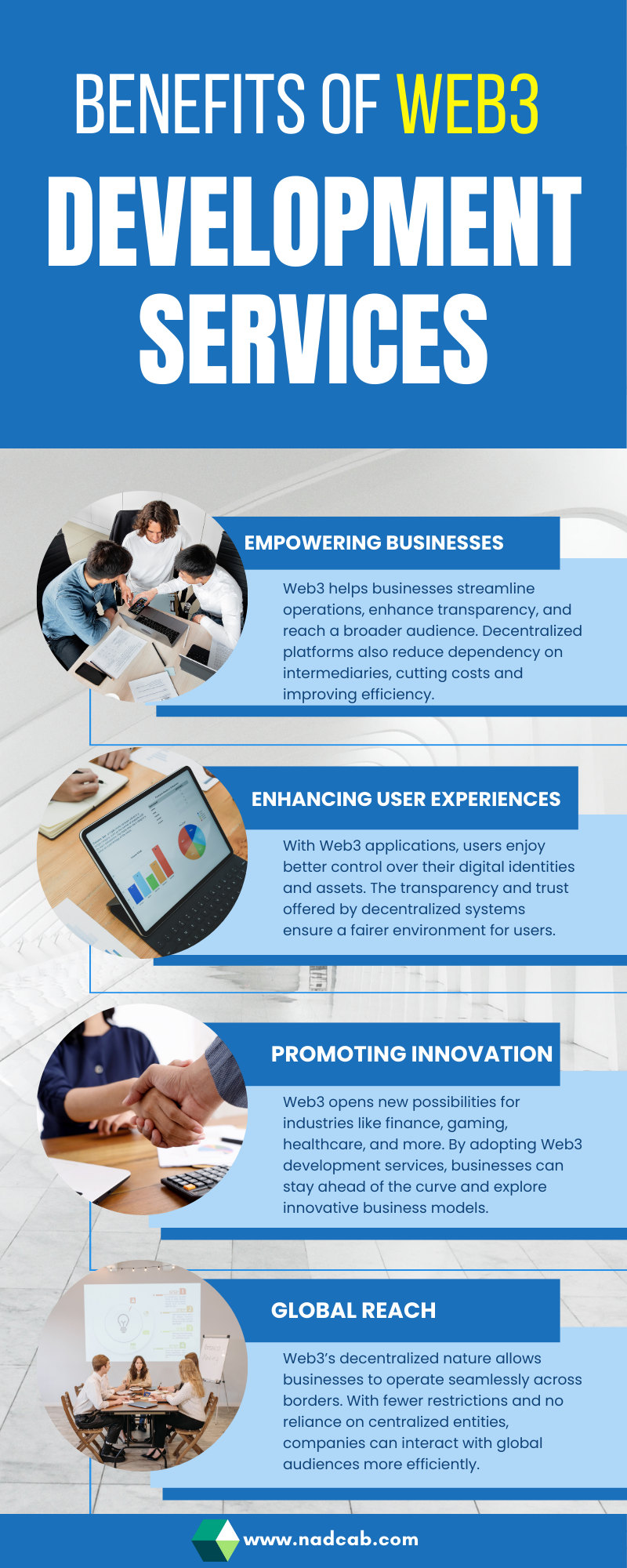 Nadcab Labs is a trusted Web3 development company offering top-quality Web3 Development Services and Web3 Solutions. We help businesses grow with innovative Web3 Development and Web3.0 Development services. Our goal is to create secure and scalable Web 3.0 solutions for the future.